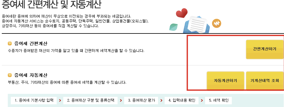 홈택스 증여세 계산기를 통해 부동산, 주식, 기타 재산의 증여세를 간단하게 계산할 수 있으니 활용해 보시기 바랍니다.
